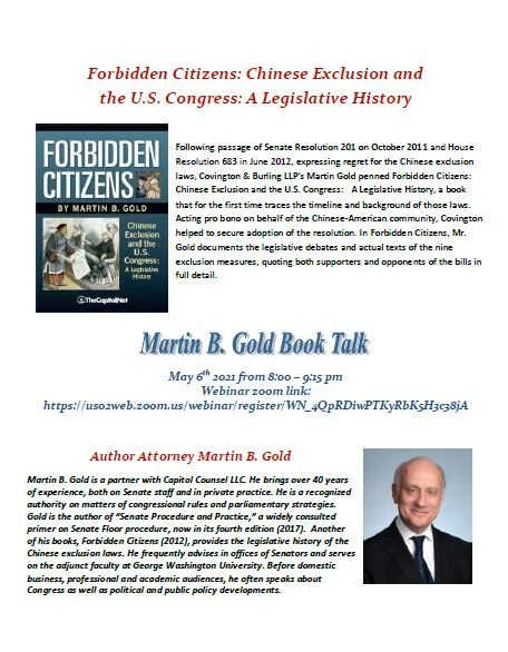 16 May “Committee of 100: The Past, Present and Future of Chinese Americans in Today’s Society.” "The US-China Relationship and Its Impact on Asian Americans in Our Quest for Total Inclusion"